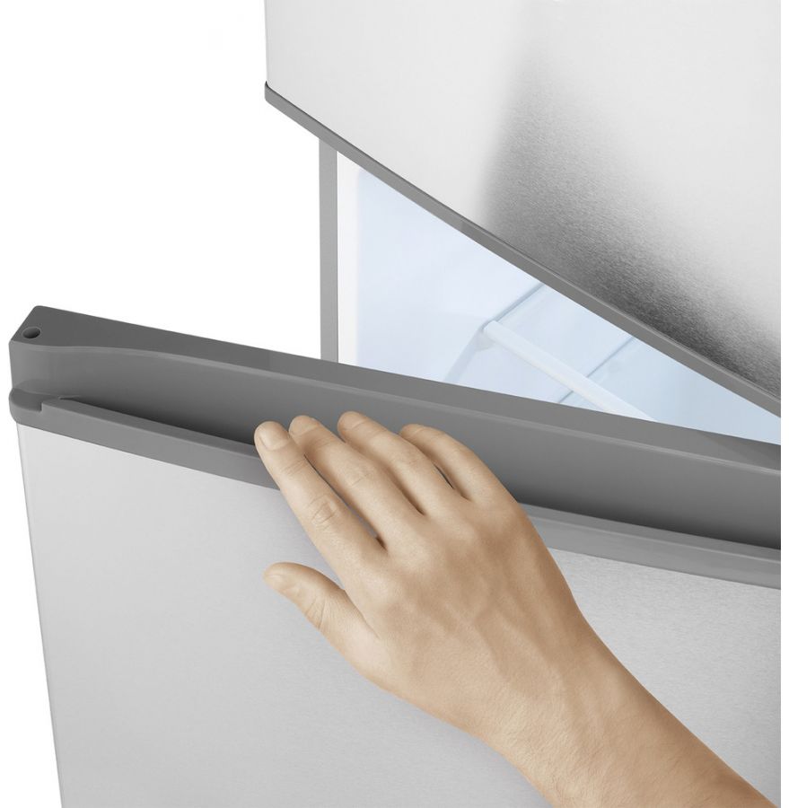 Dvoudveřová nerezová kombinovaná chladnička PHILCO PT 204 EX s mrazícím boxem v horní části, v energetické třídě E, s možností otočení směru otevírání dveří.
