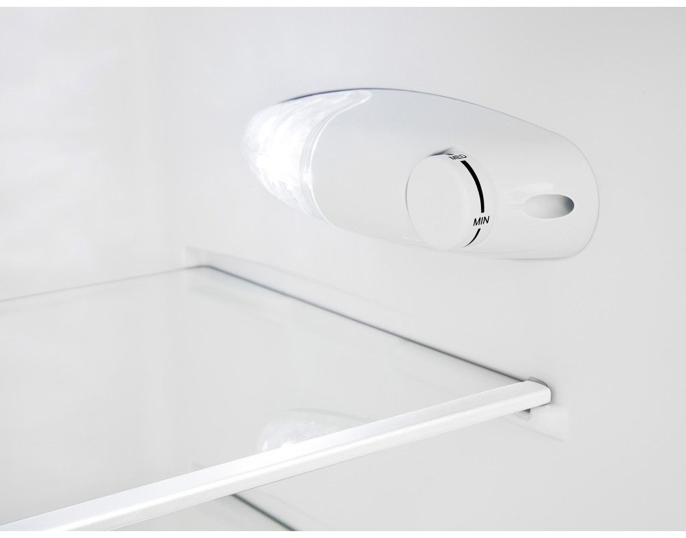 Model je vybaven vnitřním LED osvětlením, dveřními poličkami, skleněnými poličkami v hlavní části a šuplíkem na ovoce a zeleninu.