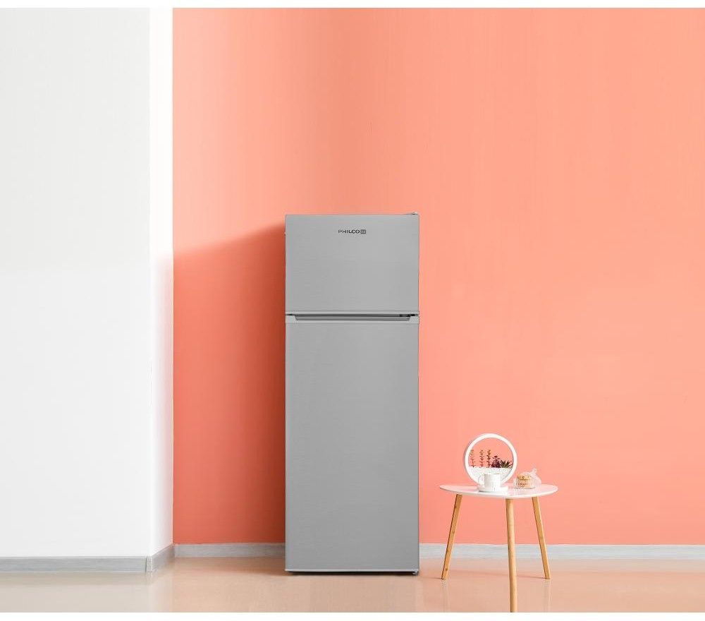 Dvoudveřová kombinovaná chladnička Philco PT 213 EMX s mrazničkou v horní části, v energetické třídě E a možností otočení směru otevírání dveří.