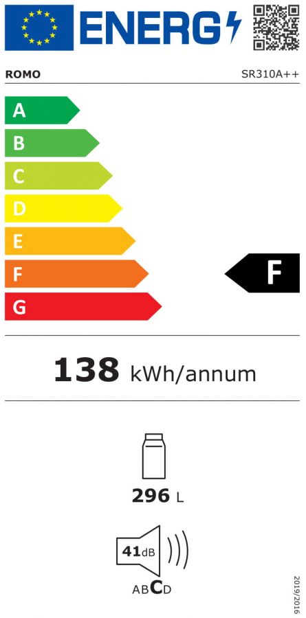 Chladnička s energetickou třídou F o celkovém užitném objemu 296 l.