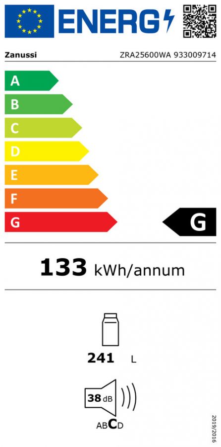 Chladnička s energetickou třídou G o celkovém užitném objemu 241 l.