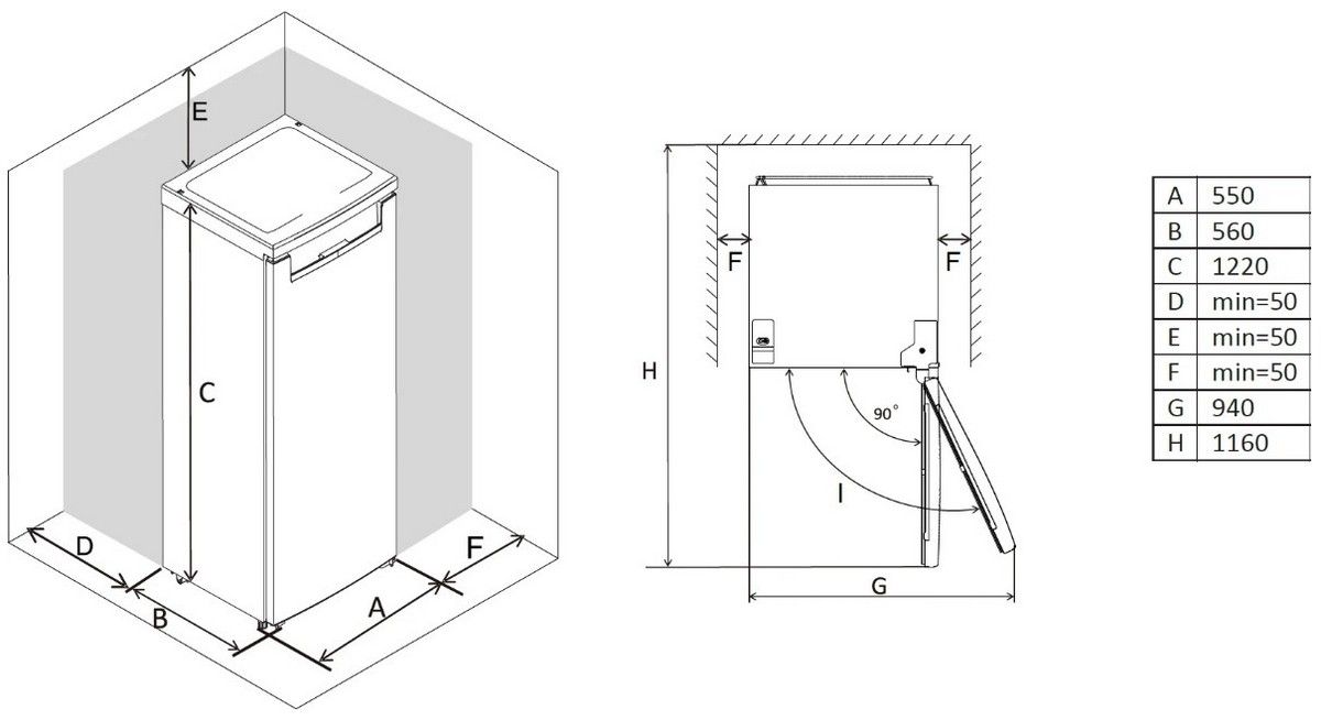 - Čistý objem chladničky/mrazničky: 176 l/14 l