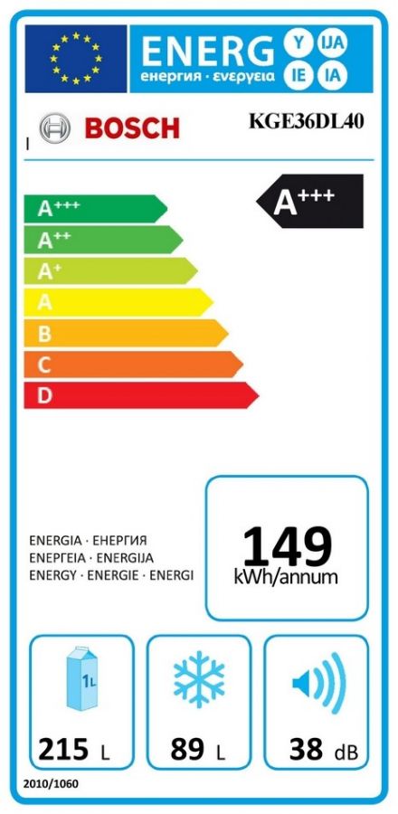 Kombinovaná chladnička s energetickou třídou A+++ o celkovém užitném objemu 304 l. Objem chladničky 215 l a objem mrazničky 89 l.
