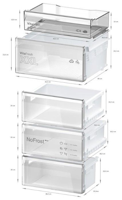 - VitaFresh XXL &: uchovává potraviny déle čerstvé v extra velkých zásuvkách chladničky s kontrolovaným klimatem.