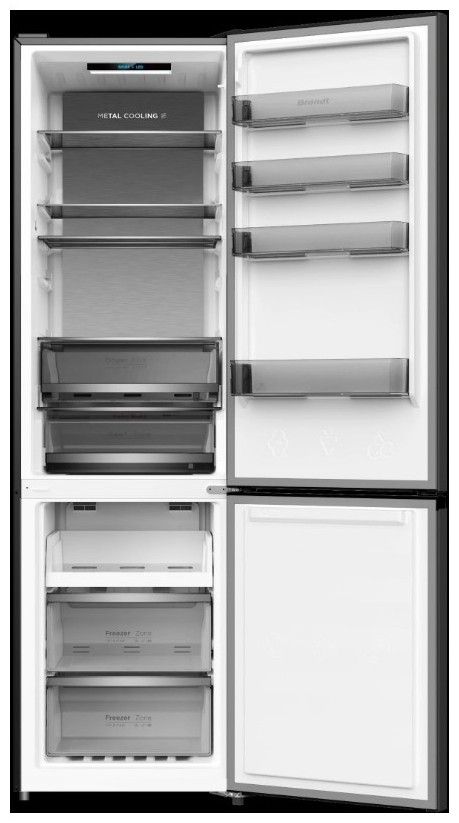 Brandt BFC2066AD je vybavena řadou inteligentních funkcí, které vám usnadní život. Funkce Super chlazení a Super mrazení rychle sníží teplotu pro rychlé uchování potravin. Pomocí funkce ECO bude chladnička fungovat s lepší účinností díky lepšímu přednastavenému teplotnímu rozsahu mezi teplotou v chladničce a mrazničce. Teplota v chladničce bude nastavena na 5°C a v chladničce na -18°C. Díky dětskému zámku ovládacího panelu a alarmu otevřených dveří je zajištěna bezpečnost vašich potravin i dětí.