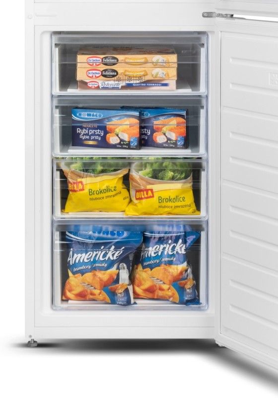 Mrazicí prostor s objemem 114 litrů je přehledně rozdělen 4 šuplíky. Pohodlně tak zamrazíte všechny potřebné zásoby. Chladnička dokáže zamrazit až 5,5 kg za 24 hodin a je zařazena do **** třídy mrazení. Pro tento případ chladnička disponuje funkcí „Super mrazení“, která zajistí, že potraviny budou zamrazeny za ideálních podmínek. Při výpadku proudu se zkažených potravin bát nemusíte. Chladnička dokáže jídlo udržet zmražené až 12,5 hodiny.