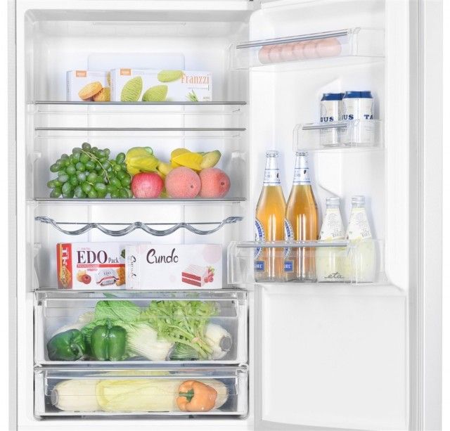 S celkovým užitným objemem 323 l (219 l pro chladničku a 104 l pro mrazničku) máte dostatek prostoru pro uložení všech potravin. Transparentní šuplíky a dveřní přihrádky usnadňují organizaci a snadný přístup ke všem potravinám. Nechybí zde ani praktické držáky na lahve.