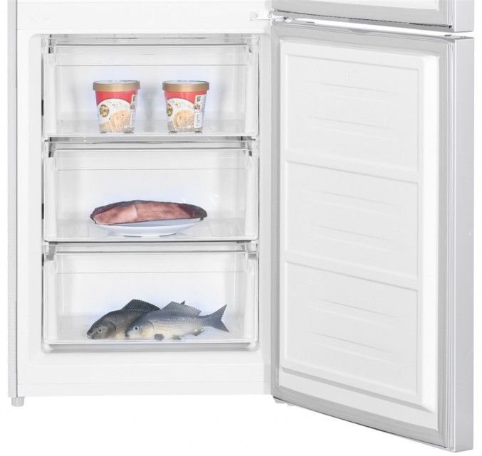 Chladnička je elegantně provedena v bílé barvě, která zapadne do jakéhokoli kuchyňského prostředí a dodá mu čistý a moderní vzhled.