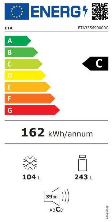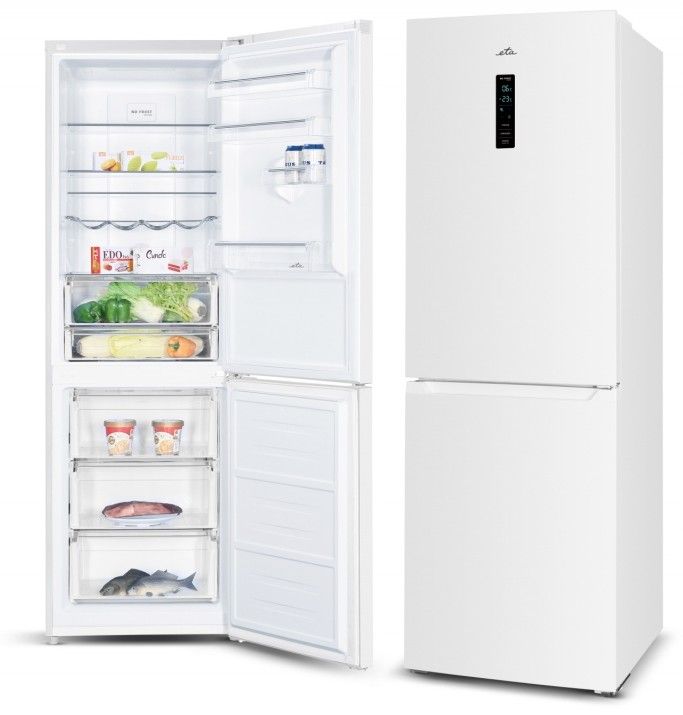 Moderní a praktická kombinovaná chladnička ETA bude královnou každé kuchyně. Se svým velkorysým celkovým objemem 347 litrů se pohodlně postará o jídlo celé rodiny. Svou spotřebou však do rodinného rozpočtu nezasáhne. Energeticky je chladnička zařazena do úsporné třídy C.