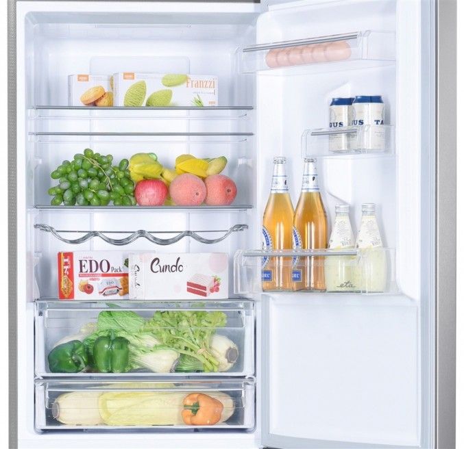 S celkovým užitným objemem 323 l (219 l pro chladničku a 104 l pro mrazničku) máte dostatek prostoru pro uložení všech potravin. Transparentní šuplíky a dveřní přihrádky usnadňují organizaci a snadný přístup ke všem potravinám. Nechybí zde ani praktické držáky na lahve.