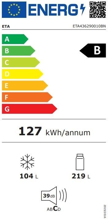 - Energetická účinnost – spotřeba pouhých 127 kWh/rok, třída B.