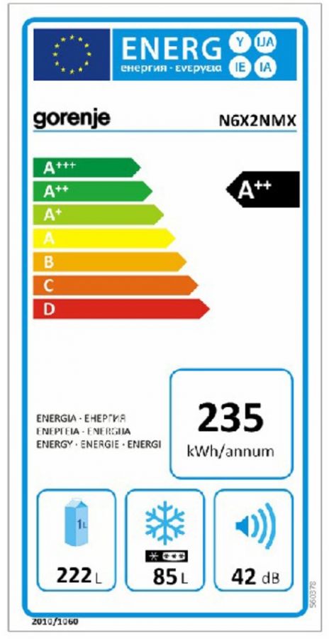 Kombinovaná chladnička s energetickou třídou A+++ o celkovém užitném objemu 307 l. Objem chladničky 222 l a objem mrazničky 85 l.