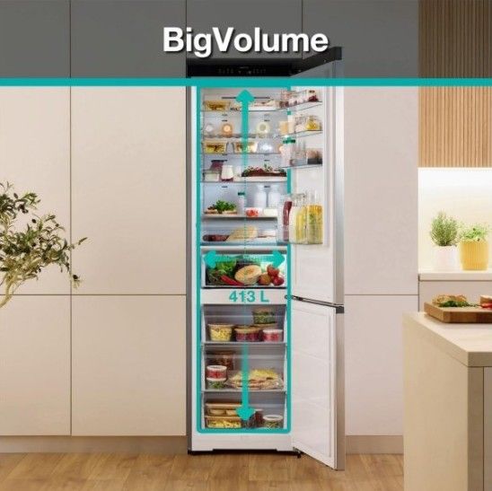 Užijte si největší úložný objem ve své třídě s velkorysými 413 litry, ideální pro rodiny nebo týdenní nákupy. Potraviny jakéhokoli tvaru a velikosti uložíte bez námahy a získáte lepší přehled i organizaci. Prostorný interiér snadno pokryje všechny vaše potřeby na skladování. Díky technickým vylepšením je instalace nyní jednodušší a flexibilnější s designem SlotIn.