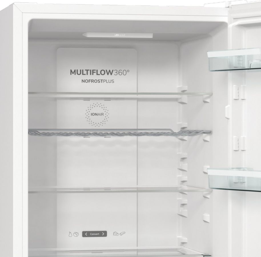 Pokročilá technologie v chladničkách simuluje přirozený proces ionizace, aby jídlo zůstalo déle čerstvé. Negativně nabité ionty generované zařízením neustále obnovují vzduch tak, aby napodobovaly přírodní mikroklima, čímž vytvářejí ideální prostředí pro čerstvé potraviny. Větrací systém MultiFlow 360° rovnoměrně distribuuje ionizovaný vzduch 14 ventilačními otvory, aby se na každé polici udržela konstantní teplota.