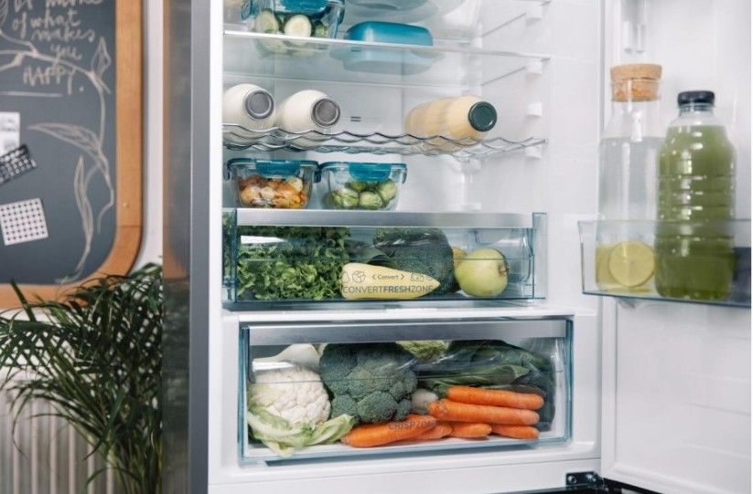 Prostorná zásuvka CrispZone je navržena tak, aby uchovala živiny a prodloužila čerstvost skladované zeleniny a ovoce díky nízké teplotě a možnosti regulace úrovně vlhkosti.