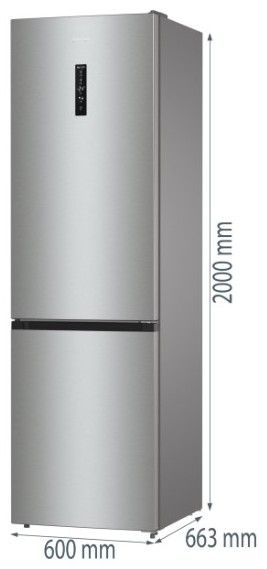 Kombinovaná chladnička o celkovém užitném objemu 361 l. Objem chladničky 255 l a objem mrazničky 106 l.
