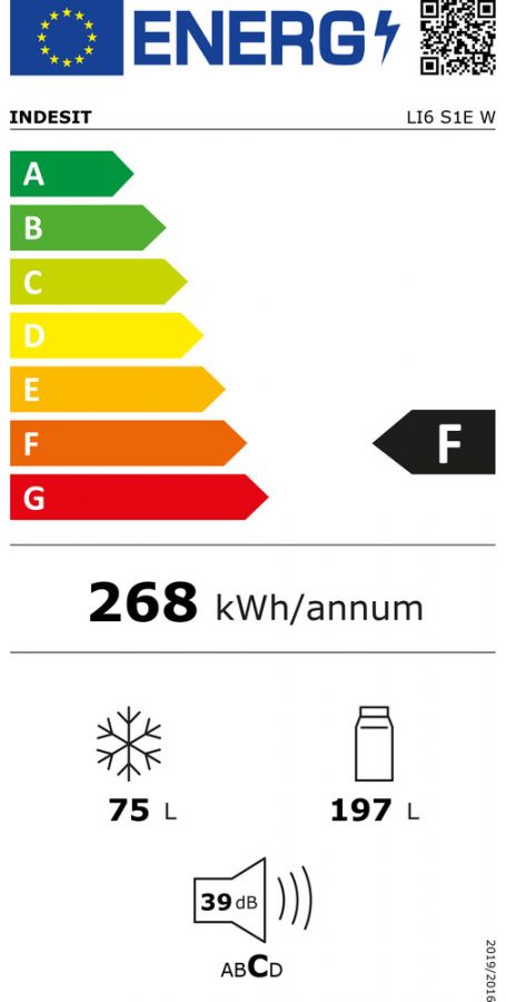 - Průměrná roční spotřeba energie v kilowatt hodinách za rok (kWh/a): 268
