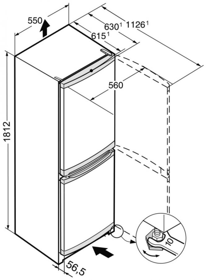 Kombinovaná chladnička o celkovém užitném objemu 296 l. Objem chladničky 212 l a objem mrazničky 84 l.