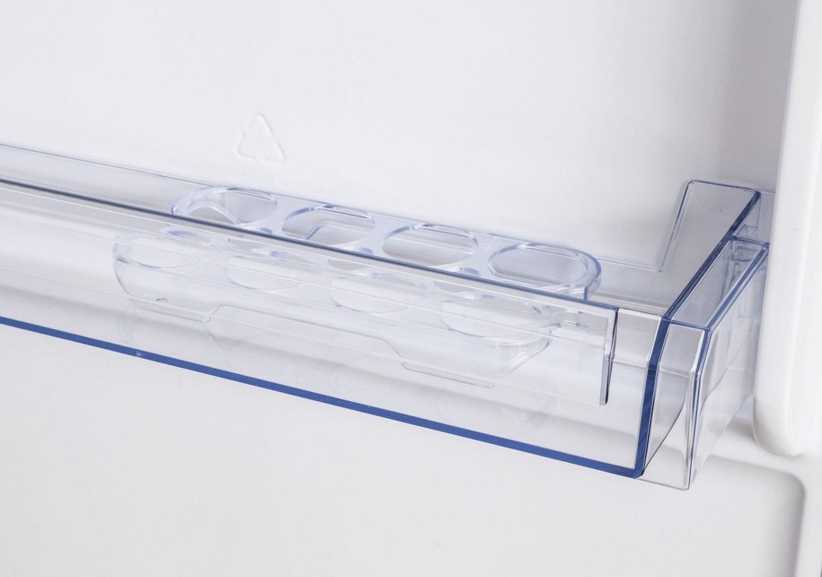 Potraviny můžete umístit do celkem tří polic z bezpečnostního skla, přičemž dvě z nich jsou výškově nastavitelné. Nechybí ani polička na láhve a ve dveřích chladničky najdete celkem tři police. Otevírání lednice zajišťuje integrované madlo.