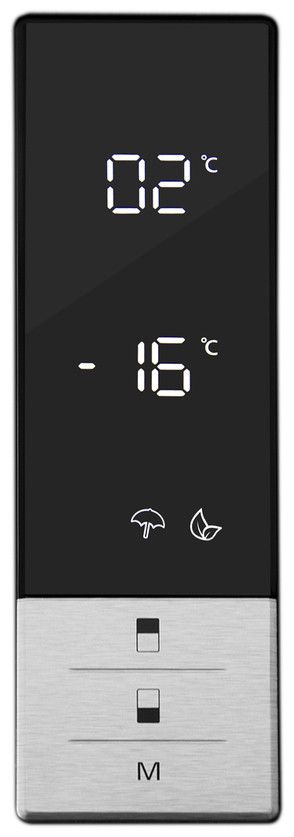 Dotykový multifunkční displej umožňuje komfortní ovládání, nastavení usporného EcoRežimu, který snižuje spotřebu elektrické energie, či ovládání teploty v chladničce a mrazničce.