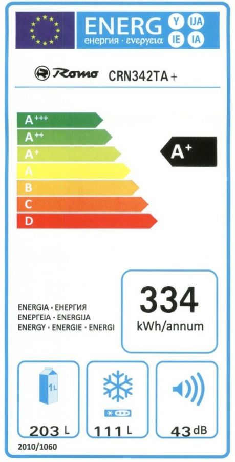 Kombinovaná chladnička s energetickou třídou A+ o celkovém užitném objemu 314 l. Objem chladničky 203 l a objem mrazničky 111 l.
