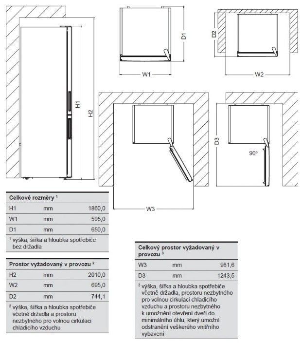 - Čistý objem chladničky / mrazničky: 234 l / 107 l