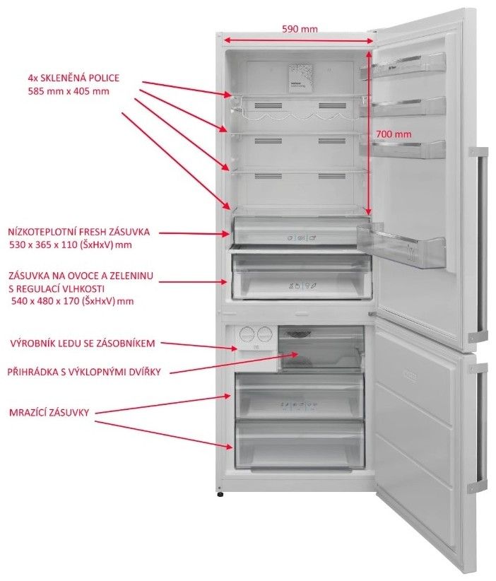 - Dual NO FROST (oddělená ventilace chladničky a mrazničky)