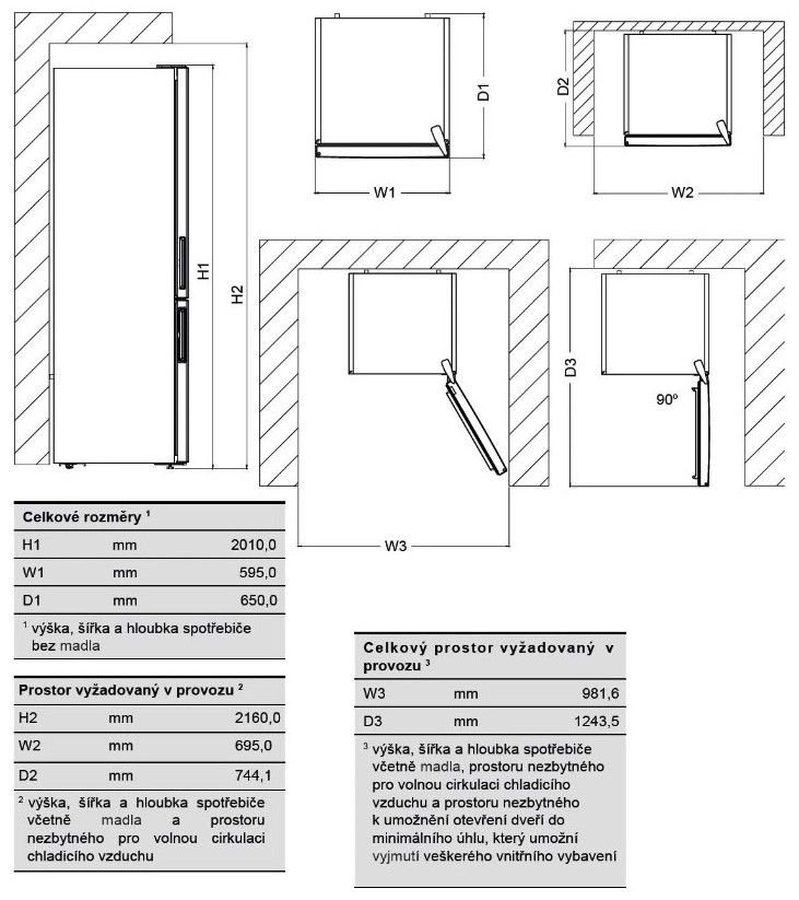 - Čistý objem chladící části: 266,1 l