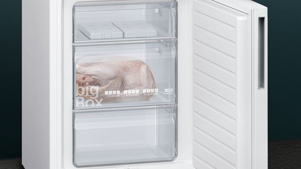 Jehněčí kýta, pizza věž nebo vysoká zamrazovací dóza na čerstvé borůvky - pro zvláště veliké a neskladné potraviny potřebujete extravelký mrazicí prostor. A přihrádka bigBox Vám nabízí mnoho místa pro optimální skladování a uskladnění.