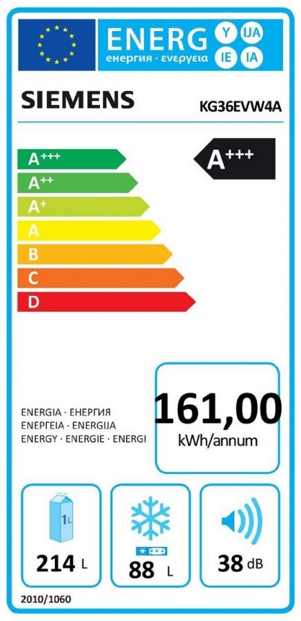 - Třída spotřeby energie: A+++ v rozsahu tříd energetické účinnosti od A+++ do D