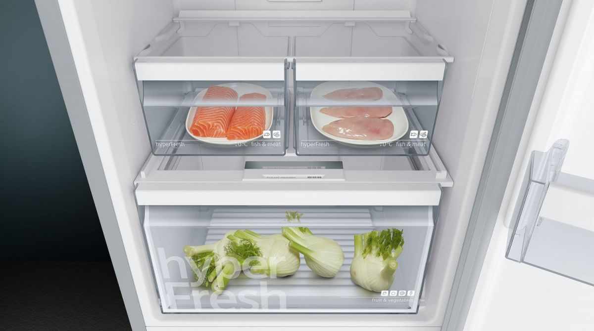 Kombinace chladnička/mraznička s přihrádkou hyperFresh udrží ovoce a zeleninu déle čerstvou, plus noFrost - již žádné odmrazování.