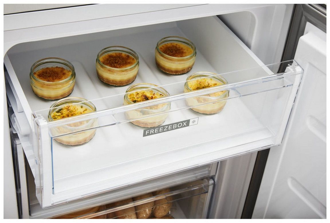 - Nízkonámrazová technologie LessFrost nahrazuje mrazící rošty v mrazničce, námraza se tvoří na bočních stěnách mrazničky, možnost