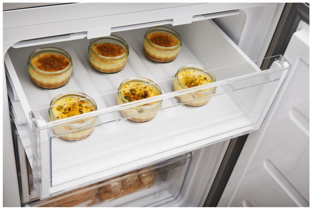 - Nízkonámrazová technologie LessFrost nahrazuje mrazící rošty v mrazničce, námraza se tvoří na bočních stěnách mrazničky, mezi zásuvkami jsou skleněné poličky, na které možné přímo pokládat potraviny