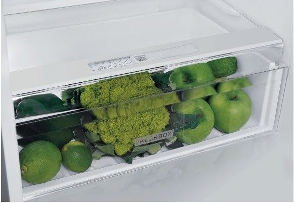 Ovoce a zelenina vydrží čerstvé až 15 dní*. Zásuvka s integrovaným posuvným ovládáním pro regulaci vlhkosti, které umožňuje uchovávat ovoce a zeleninu čerstvé až 15 dní*.