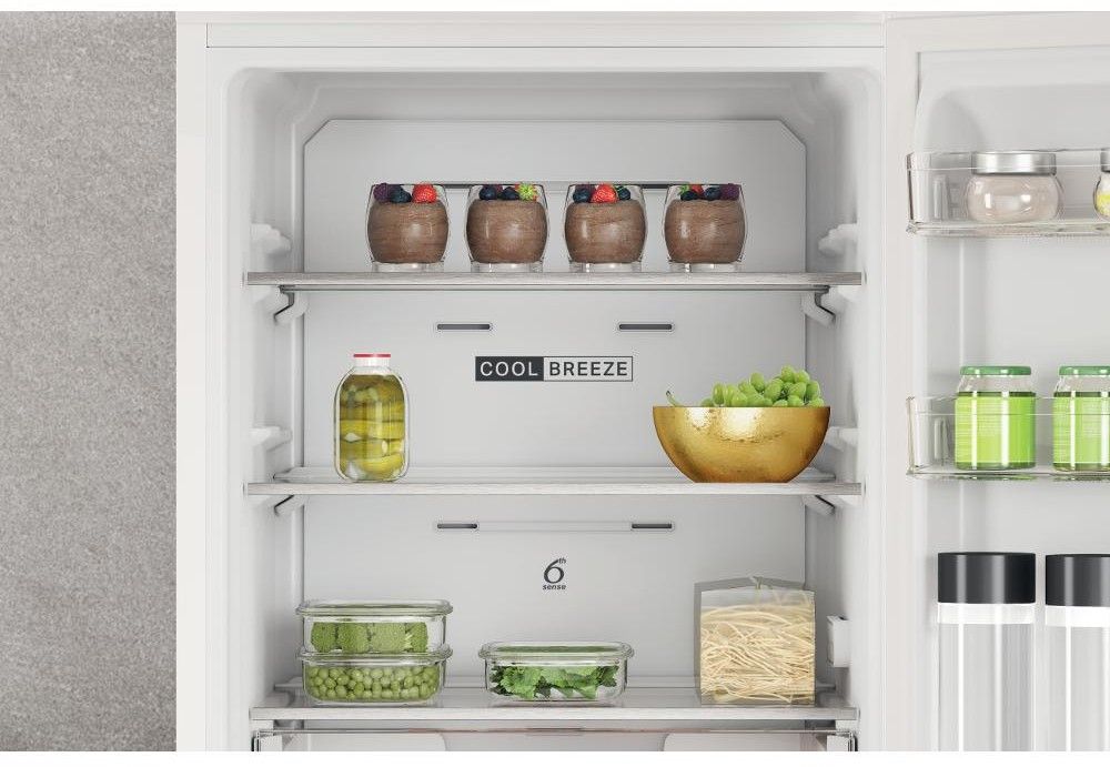 Díky technologii Cool Breeze můžete uskladňovat suroviny naprosto bez rozmýšlení. Rovnoměrná cirkulace vzduchu umožňuje organizaci potravin uvnitř chladničky intuitivně a zajišťuje jejich stabilní teplotu* pro optimální uchování.