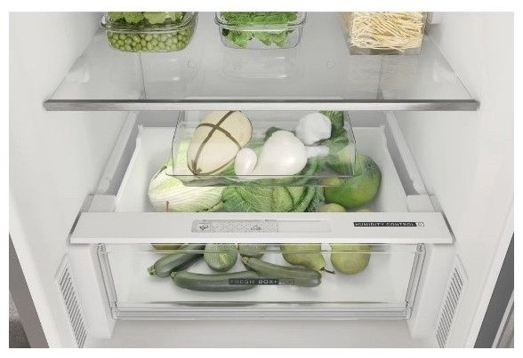 Ovoce a zelenina vydrží čerstvé až 15 dní*. Zásuvka s integrovaným posuvným ovládáním pro regulaci vlhkosti, které umožňuje uchovávat ovoce a zeleninu čerstvé až 15 dní*. *Založeno na úbytku hmotnosti a vizuální kvalitě s ohledem na běžné ovoce a zeleninu. Interní testovací postup.