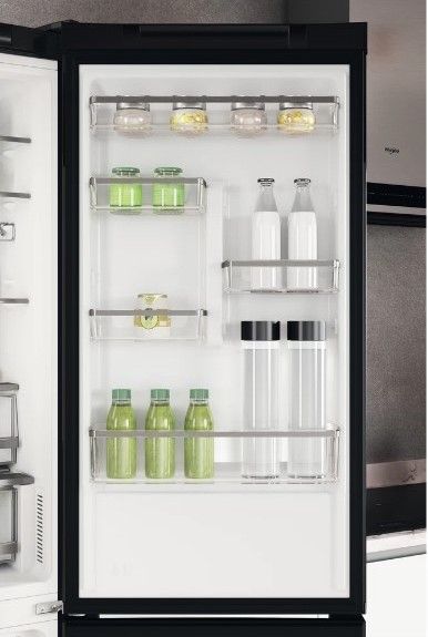 Bezpečné skladování. Tato chladnička Whirlpool poskytuje dokonalý prostor pro skladování lahví díky speciální přihrádce na lahve ve dveřích chladničky.