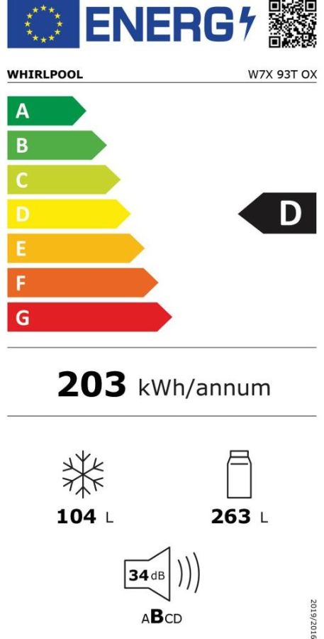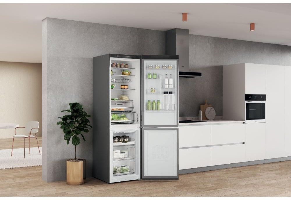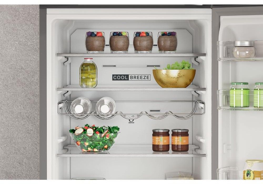 Kombinovaná chladnička o celkovém užitném objemu 367 l. Objem chladničky 263 l a objem mrazničky 104 l.