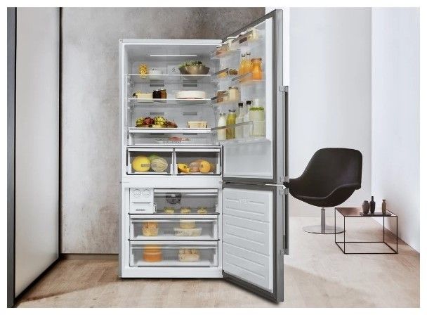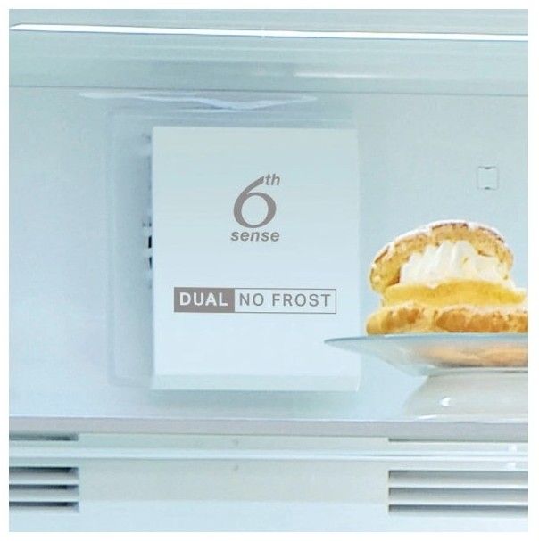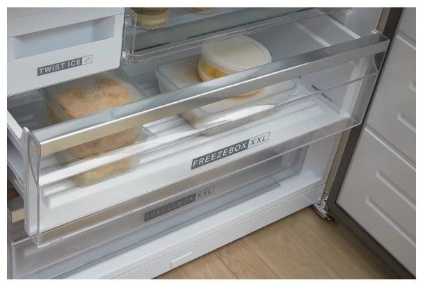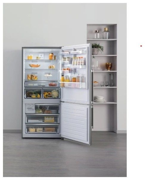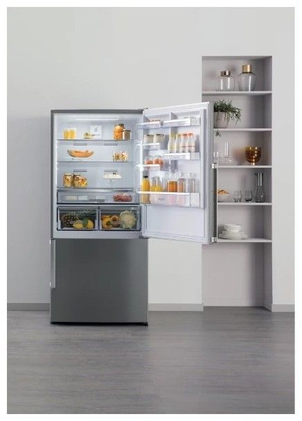 Dva nezávislé chladicí systémy NoFrost vytvářejí ideální beznámrazové prostředí pro skladování potravin, zajišťují ideální teplotu a vlhkost a zabraňují mísení pachů mezi chladničkou a mrazničkou. Ovoce a zeleninu můžete umístit kamkoli do chladničky, Dual NoFrost je udrží čerstvé až 15 dní*. *Založeno na úbytku hmotnosti a vizuální kvalitě s přihlédnutím k běžnému ovoci a zelenině. Interní testovací postup.