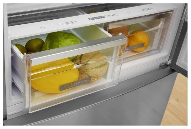Ovoce a zelenina vydrží čerstvé až 15 dní*. Zásuvka s integrovaným posuvným ovládáním pro regulaci vlhkosti, které umožňuje uchovávat ovoce a zeleninu čerstvé až 15 dní*. *Založeno na úbytku hmotnosti a vizuální kvalitě s ohledem na běžné ovoce a zeleninu. Interní testovací postup.