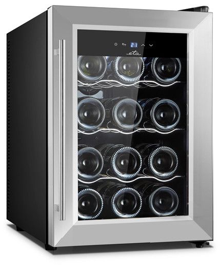 Do této elegantní vinotéky s objemem 37 l naskládáte max. 12 lahví, kterými potěšíte každou návštěvu. Kapacita vinotéky je ovlivněna tvarem a velikostí lahví. Díky své praktické výšce 35,9 cm si vinotéka ETA najde místo i v menších prostorech. Své víno můžete skladovat na 3 chromovaných policích a díky skleněným dveřím budeme mít o všem dokonalý přehled.