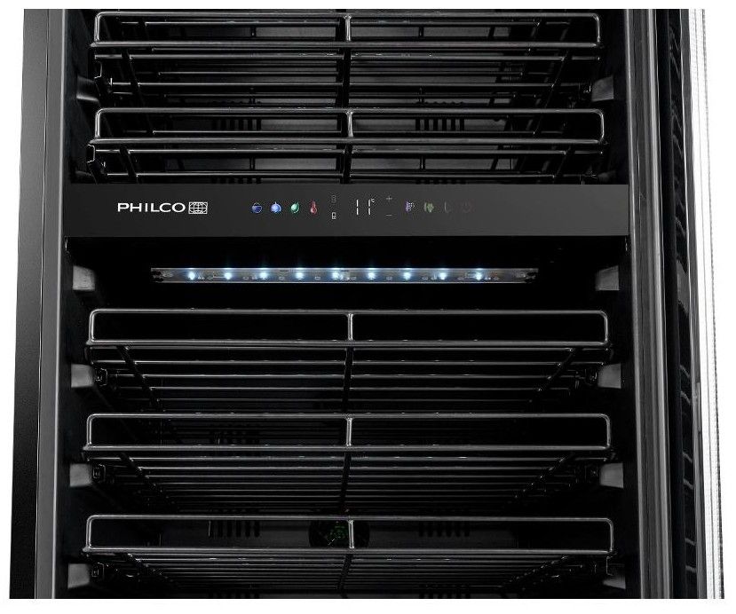 Dvouzónová kompresorová vinotéka Philco PW 131 GDC je skvělou volbou pro milovníky vína, kteří chtějí mít po ruce bohatou sbírku. Vinotéka pojme až 131 lahví, nabídne také dvě nezávislé zóny chlazení a police LabelView, se kterými máte dokonalý přehled.