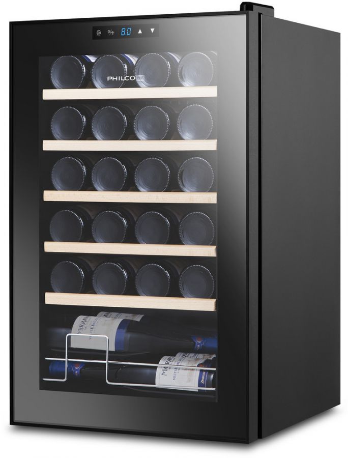 Model Philco PW 24 KF je jednozónová kompresorová vinotéka pro 24 lahví, která uchová Vaše vína v té nejlepší kvalitě při Vámi nastavené teplotě. Obsahuje odolné tónované sklo dveří proti poškrábání.