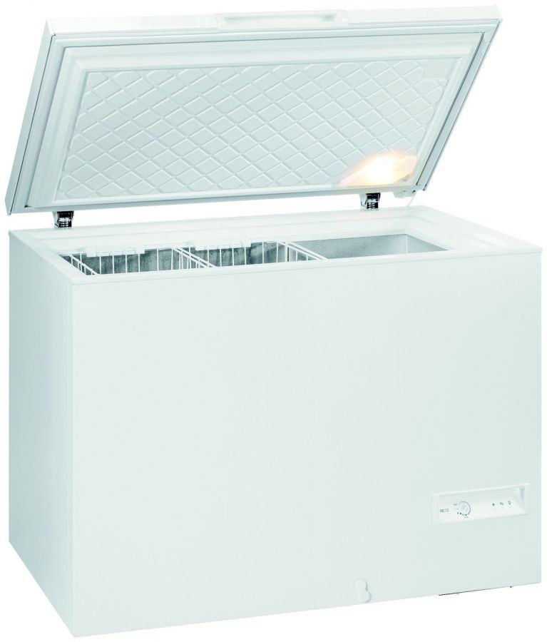 Pultový mrazák o objemu 230 l s energetickou třídou A+.