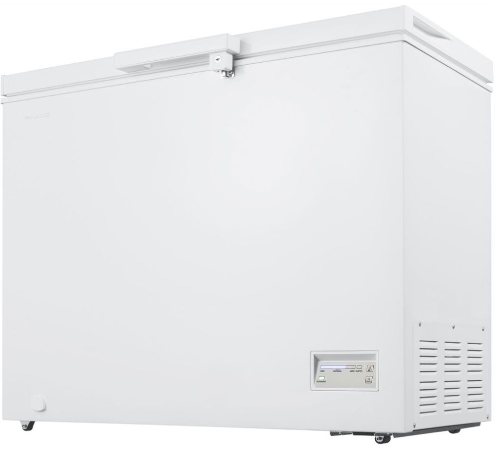 Invertorový truhlicový mrazák Philco PCF 308 DFPI o objemu 308 l. Jedná se o zpracování v úsporné energetické třídě D s LED osvětlením a elektronickým ovládáním.