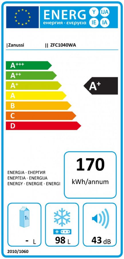 Pultový mrazák o objemu 98 l s energetickou třídou A+.