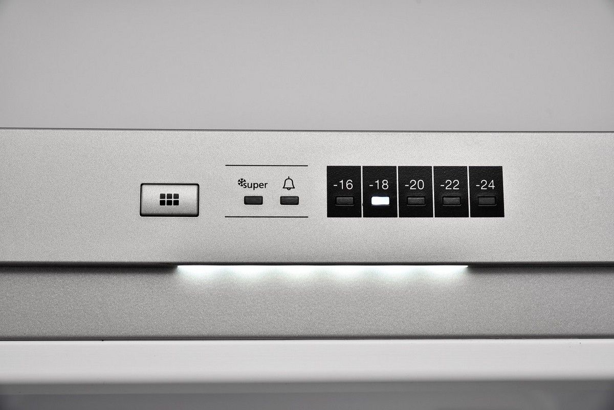 Tato mraznička se pyšní elegantním nerezovým designem, který se hodí do každé moderní kuchyně. Díky vnitřnímu LED osvětlení budete mít vždy dokonalý přehled o uskladněných potravinách. Externí madlo a výškově stavitelné nožky zajišťují pohodlné používání a stabilitu na jakémkoliv povrchu.
