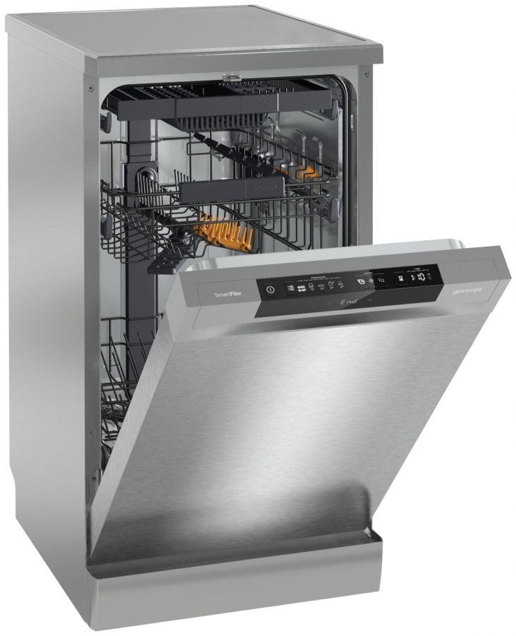 Volně stojící myčka 45cm s energetickou třídou A++, funkcí SpeedWash a ExtraDry. Má ukazatel zvoleného programu, vizuální indikátor konce mytí na ovládacím panelu a zvukový signál konce mytí.
