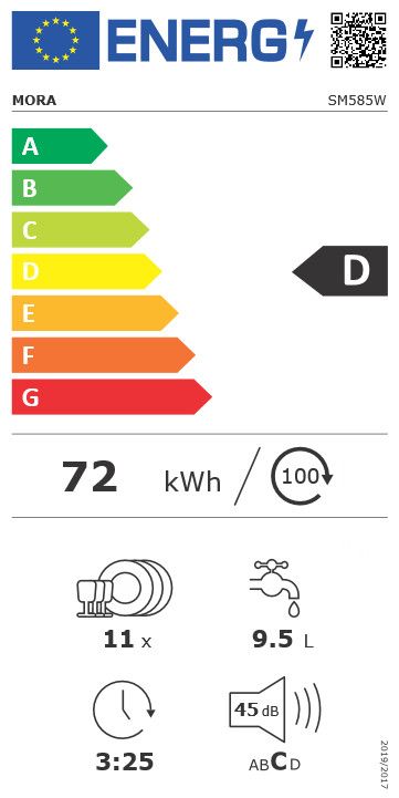 Volně stojící myčka nádobí Mora SM 585 W s novým výkonným invertorovým motorem s regulací otáček zajišťuje vysoký výkon s tichým provozem. V šířce 45 cm pojme až 11 jídelních souprav najednou. Mytí je velice tiché a úsporné, se spotřebou vody 9,5 l dosahuje hlučnosti 45 dB(A) re 1 pW. Disponuje 3 koši, z toho 1 příborovou zásuvkou, na které perfektně uspořádáte příbor, který se tak vzájemně nepoškrábe a dokonale vyschne. Se systémem AquaStop se nemusíte obávat nemilého překvapení v podobě vytopení. Přívodní hadice se totiž skládá ze dvou odolných vrstev a hned u vodovodního kohoutku je bezpečnostní ventil, který vám zaručí maximální ochranu vašeho domova před poničením vodou.