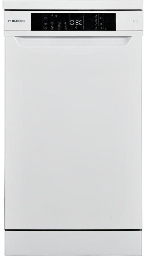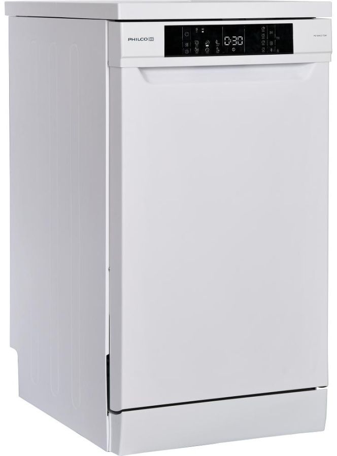 Volně stojící myčka Philco PD 1046 DTOW v elegantní bílé barvě, šířky 45 cm, umyje 10 sad nádobí a vybrat si můžete z 6 programů. Má příborovou zásuvku i koš na příbory, je flexibilní díky výškově nastavitelnému hornímu koši, a to i při plném naložení myčky.